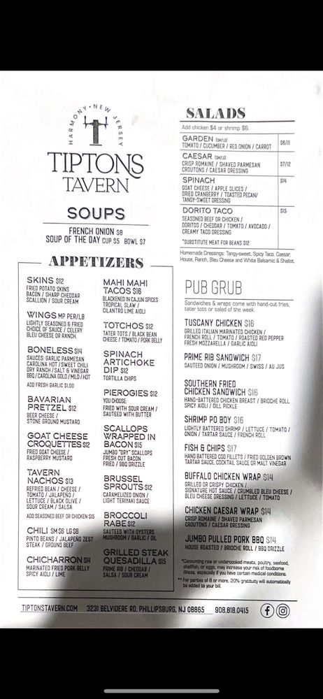 Welcome to Tiptons Tavern, a cozy pub located in Phillipsburg, NJ, where good food and great ambiance come together. As a food reviewer, I must say Tiptons Tavern stands out for its diverse menu and welcoming atmosphere. Customers rave about the fantastic food, from the mouth-watering steak to the delicious scallops and Tuscany chicken sandwich. The outdoor patio, live music, and attentive service add to the overall dining experience.